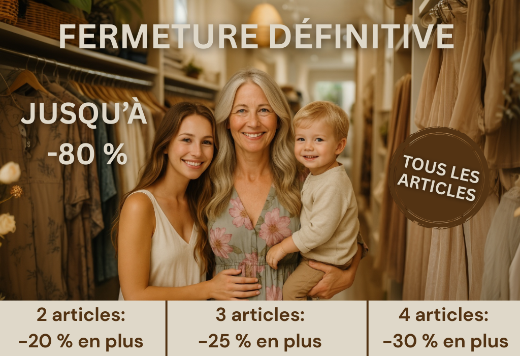 Pour vous remercier de votre amour et de votre soutien à travers les années, nous vous offrons des remises exceptionnelles sur toute la boutique — une dernière fois, de tout cœur.