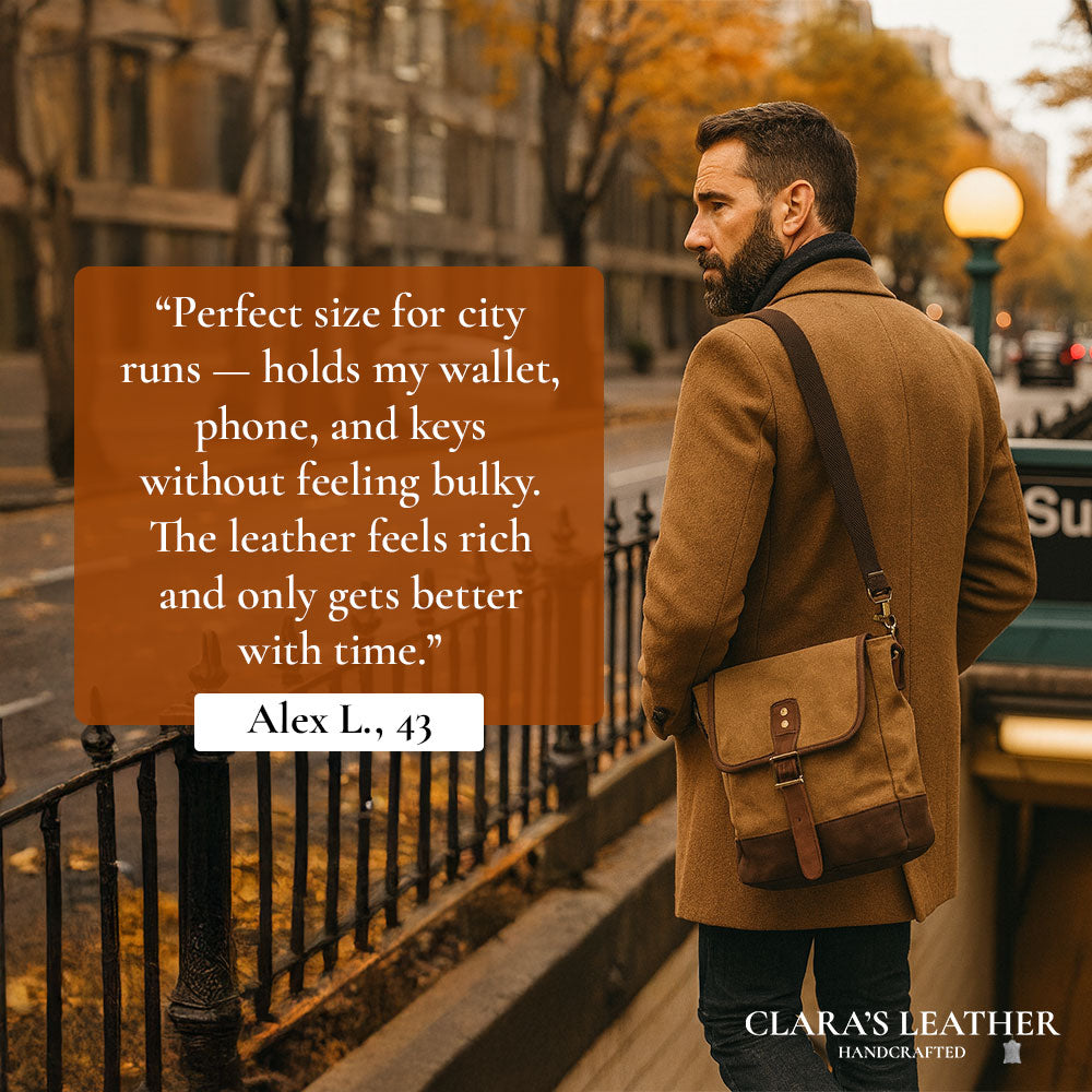William – Petit Sac Bandoulière en Toile et Cuir est plus qu'un simple sac—c'est un compagnon quotidien fiable avec un esprit vintage audacieux. Conçu pour simplifier votre vie sans compromettre le style ou la qualité, il vous aide à rester organisé, les mains libres, et sans effort cool. Portez William avec confiance et profitez de la liberté de voyager léger.